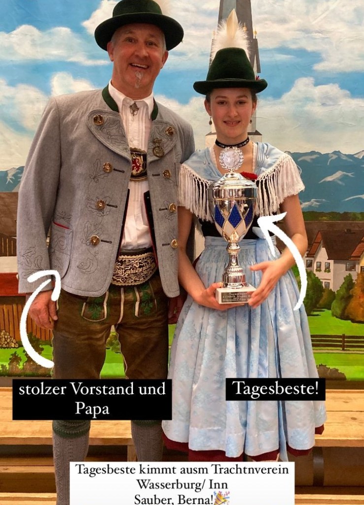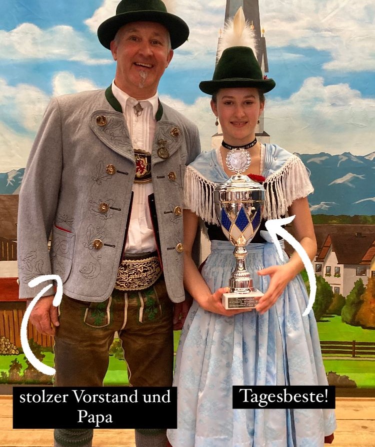 Bernadette Mittermeier gewann nicht nur in der Wertung „Dirndl 4“, sondern sicherte sich auch den Titel der Tagesbesten. Sie erhielt die beste Punktzahl aller Teilnehmerinnen und Teilnehmer und konnte somit auch stolz einen zusätzlichen Pokal mit nach Hause nehmen.