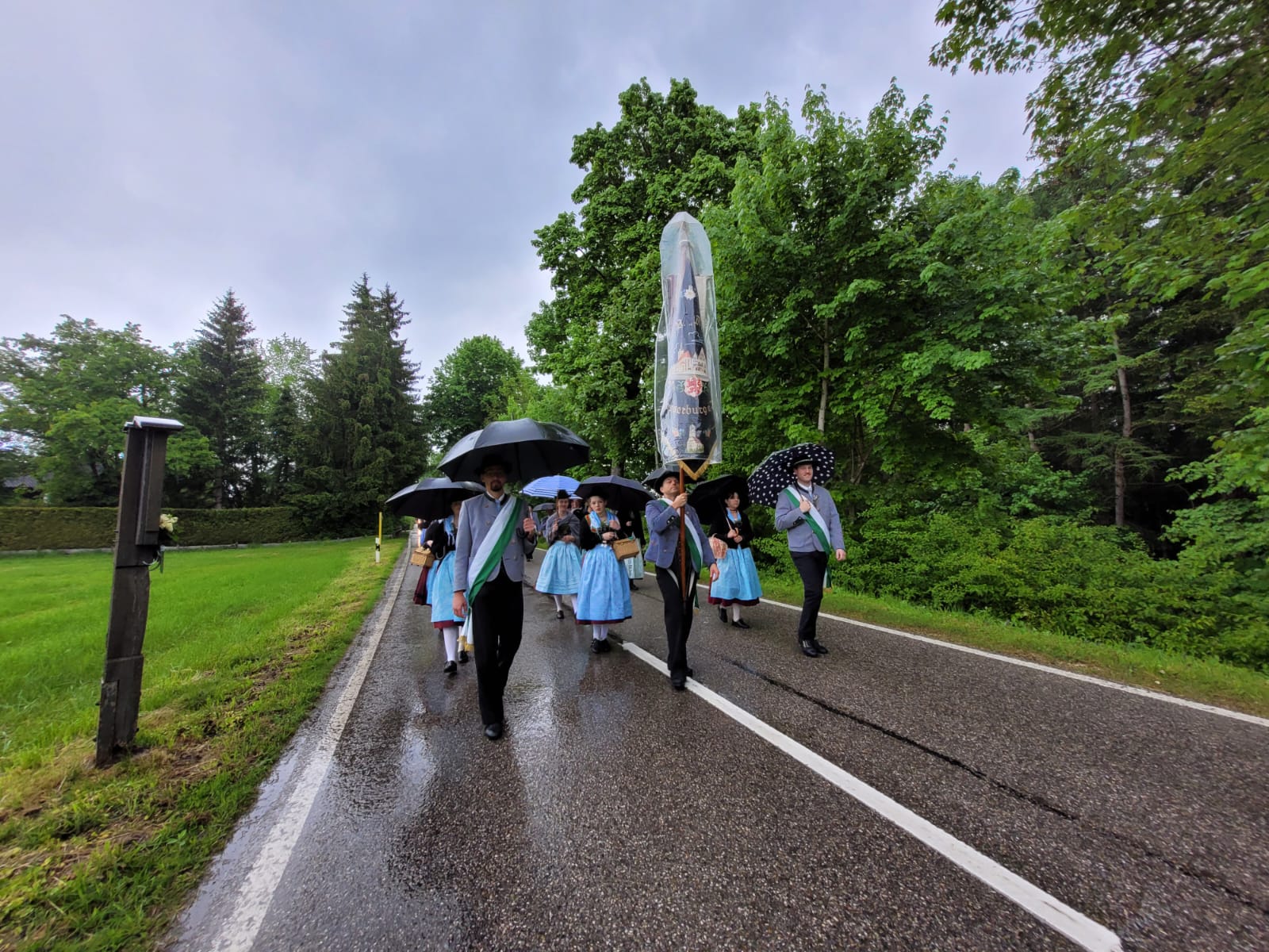 Trotz teils strömenden Regen nahmen die Wasserburger Trachler bei der diesjährigen Jubiläumswallfahrt am 18. Mai 2025 teil. Rund vier Kilometer wurde hinauf zur Kirche Maria Eck gepilgert.